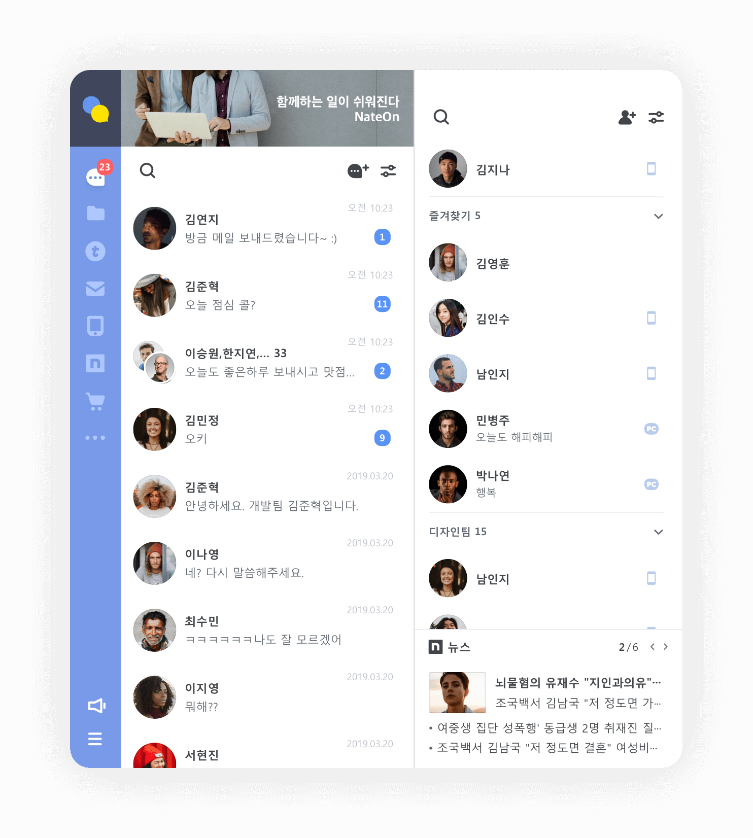 네이트온은 windows, Mac, iOS, Android, Web 모두 지원하며, 무료로 메시지 & 파일전송 할 수 있는 메신저 프로그램입니다