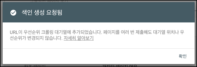 URL의 색인 생성 요청이 완료되었고 크롤링 대기열에 추가됩니다.