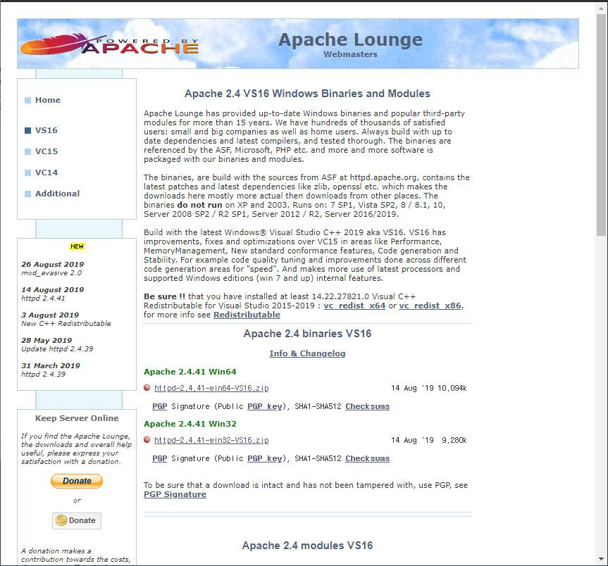 Apache VS16 binaries and modules download