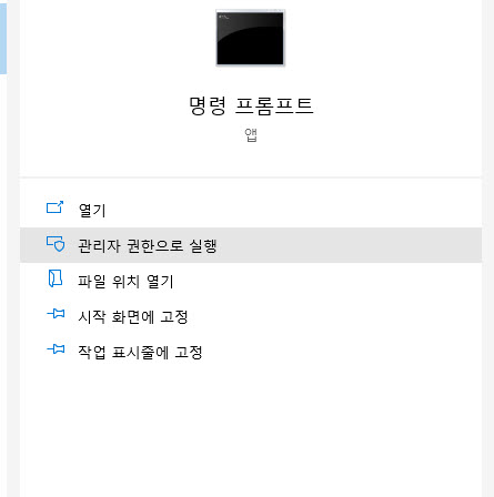 cmd 명령 프롬프트를 '관리자권한'으로 열어줍니다