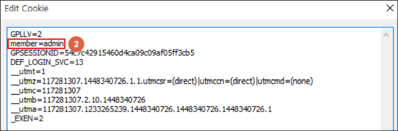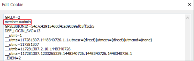 Step 2) 쿠키의 중요정보를 변경하여 다른 사용자 및 권한으로 정상 이용이 가능한지 확인