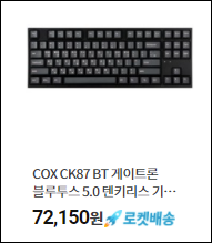 제가 오늘 소개해드릴 기계식 키보드는 콕스의 ck87 bt 모델입니다. 제가 현재 주력으로 사용하고 있는 키보드 이기도 합니다. 미니멀한 라이프를 위해서 작은 부분에서도 줄이기 위해 키보드도 텐키리스로 사용하는 중입니다. 원래 텐키 부분을 잘 사용하지 않기 때문에 따로 불편함은 없는 것 같고, 최근에는 포커 배열도 눈에 들어오더라고요