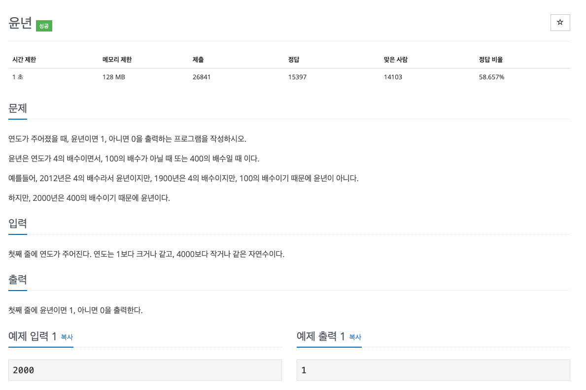 윤년을 구하는 문제입니다