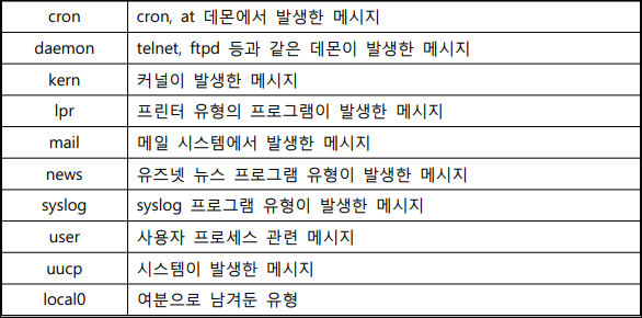 - 로그 기록 정책을 수립하고, 정책에 따라 syslog.conf 파일을 설정