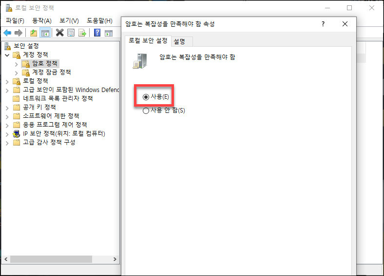 Step 2) "암호는 복잡성을 만족해야 함"을 "사용"으로 설정