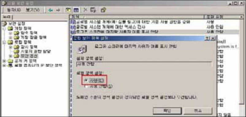 - Windows 2000 : 로그온 스크린에 마지막 사용자 이름 표시 안 함 → 사용