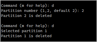 파티션번호를 입력하시면 해당 파티션이 지워집니다.