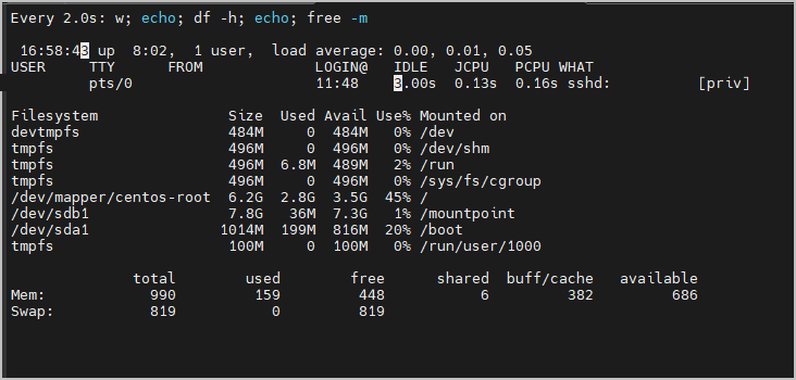 시스템 모니터링 또는 반복적인 확인이 필요한 명령어를 사용할 때 유용하게 쓸 수 있는 명령어입니다.