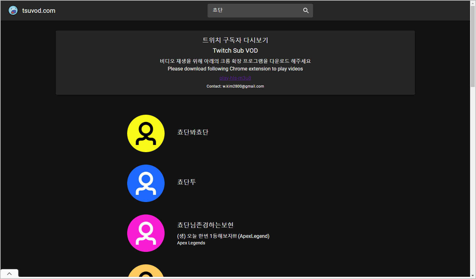 검색창에 스트리머의 이름 또는 아이디를 입력하시면 원하는 스트리머의 영상들을 불러올 수 있습니다.