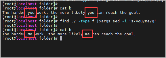 만약 특정 폴더에 파일이 많고 파일의 내용중 you 를 me 로 바꾼다면 아래와 같이 해주시면 됩니다.