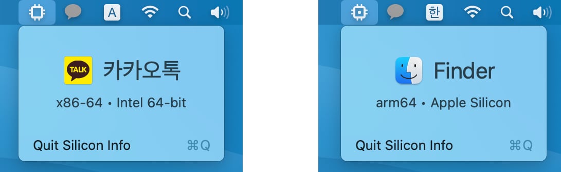 앱스토어에 있는 Slicon info라는 앱을 설치하셔도 앱이 어떤 기반으로 돌아가는지 정보를 보실 수 있습니다.