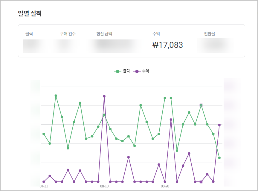 소비자가 링크를 클릭하고 24시간내에 구매가 발생하면 구매 상품의 일정 퍼센트를 커미션 받을 수 있습니다. 결제금액의 3%이기 때문에 작다면 작은 수익이지만 절대 무시할 수 없습니다.