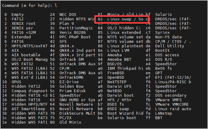 스왑을 파일로 사용하는 경우는 일반적으로 많이들 사용하기 때문에 찾아보면 쉽게 나올 것이고 파티션으로 나눌 경우 fdisk 명령어로 82번으로 만들게 되면 Linux swap 영역으로 파티션 생성이 가능합니다.