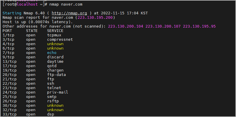 리눅스 nmap 포트 스캔 사용 방법