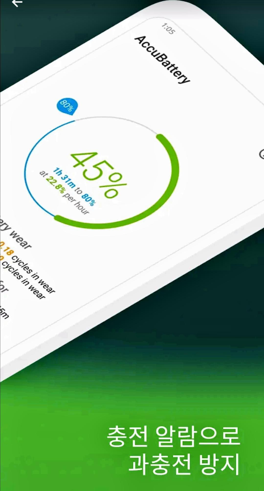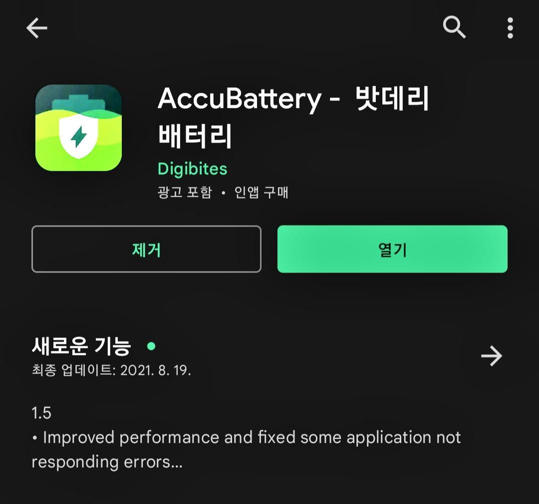 AccuBattery - 밧데리 배터리 앱을 찾아서 다운로드 해주세요