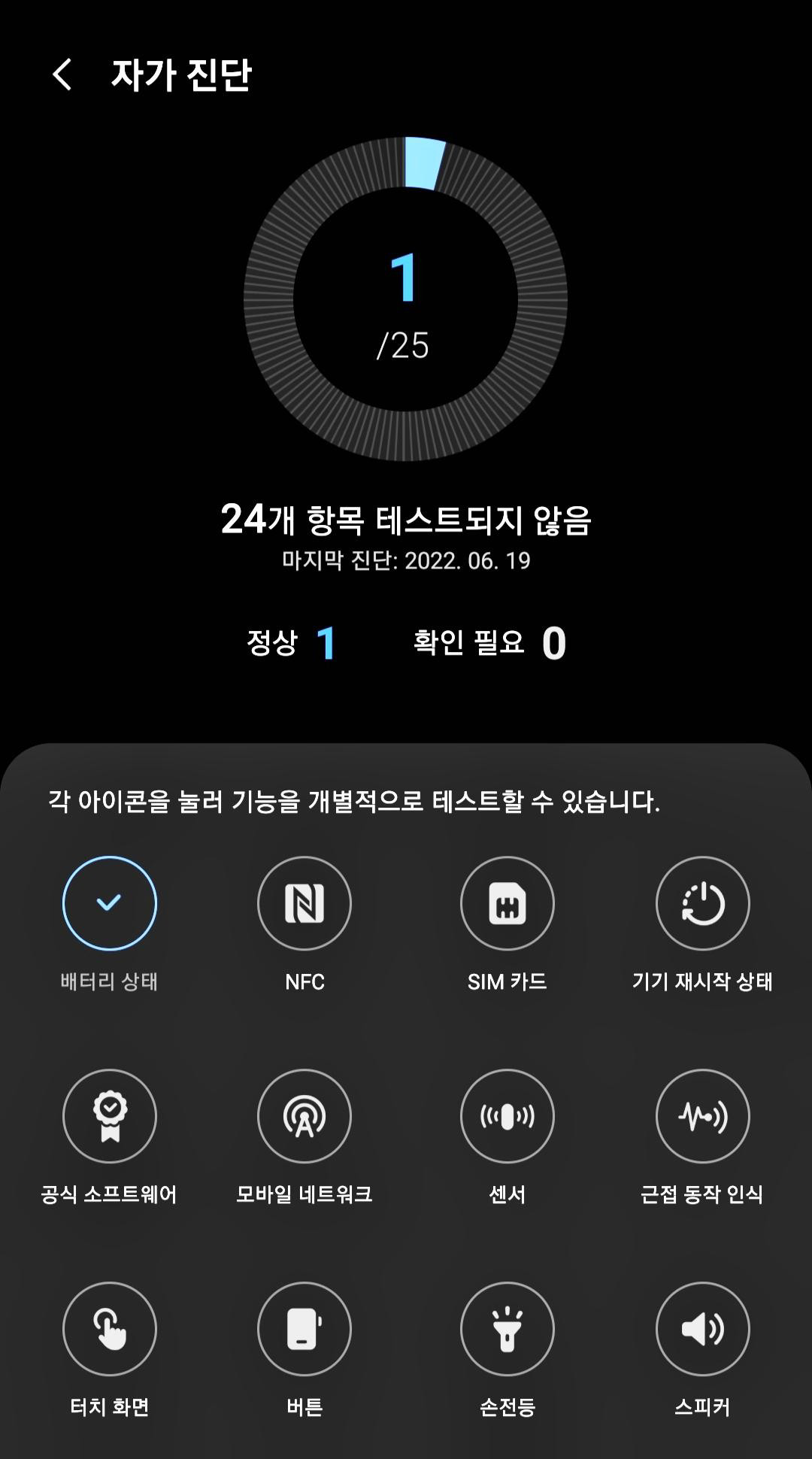 여기서 내 기기의 대부분의 기능들이 정상적으로 동작을 하는지 자가 체크를 해볼 수 있습니다.