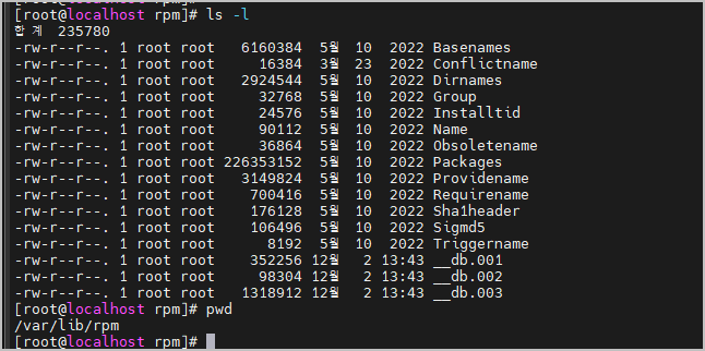오류: /var/lib/rpm 안의 패키지 데이터베이스를 열 수 없습니다