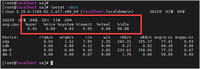 %iowait은 sar 명령어로 확인할 수 있는 로그 항목입니다.