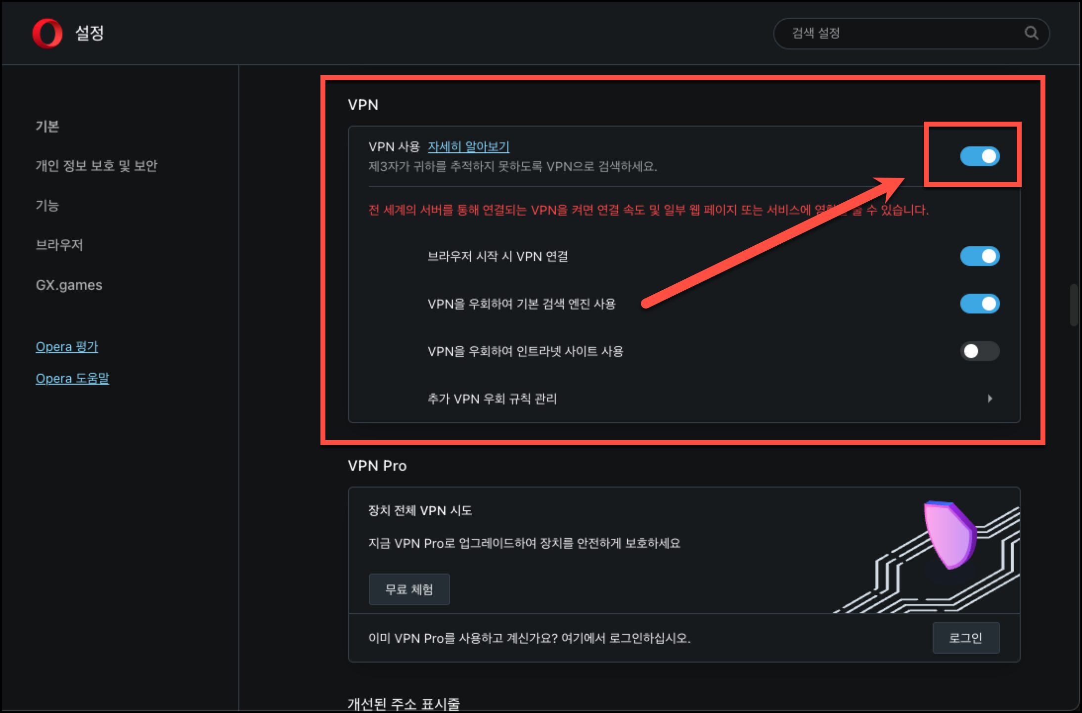오페라 브라우저 무료 VPN(Opera Browser VPN) 사용 방법